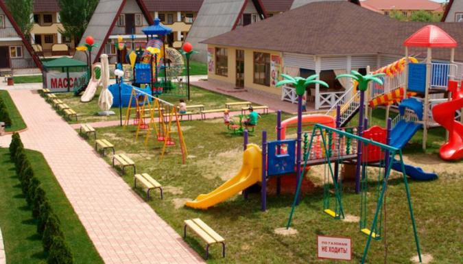 Очень хорошая территория, большая, красивая, по центру этого комплекса пруд с утками, детская площадка, 2 бассейна, бар, ресторан.