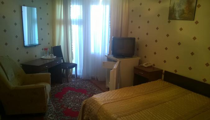 Во всех номерах: спальное место - кровать (double/twin), спутниковое TV, холодильник, прикроватные тумбы, платяной шкаф, стол, балкон, сан.узел, душ; в улучшенных номерах - кондиционер