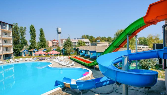 Мини аквапарк отеля состоит из двух горок: серпантин – 3 метра высота, камикадзе – высота 6 метров. Посещение мини аквапарка не ограничено и входит в стоимость проживания.