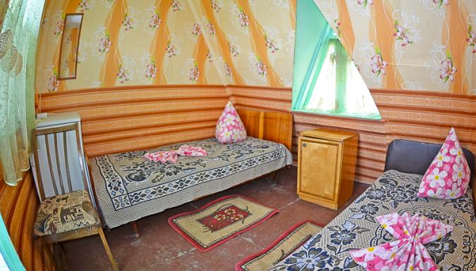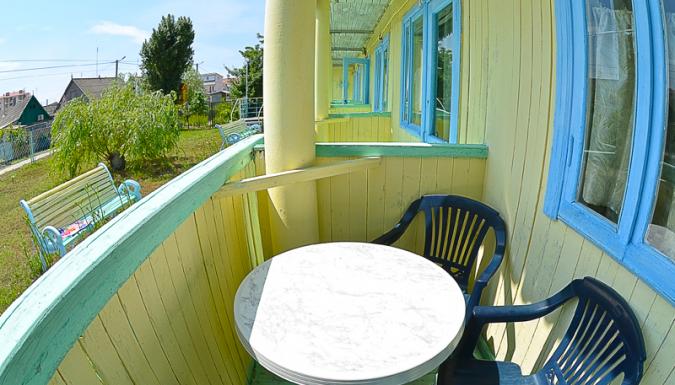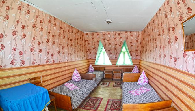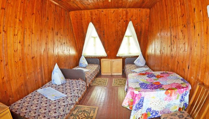 Номера эконом-класса (Летний корпус): двухэтажные деревянные корпуса, 2-х, 3-х и 4-х - местные номера с отдельным входом каждый, кровати, тумбочки, столы, стулья, балкон с пластмассовой мебелью, душ, туалет рядом на территории.