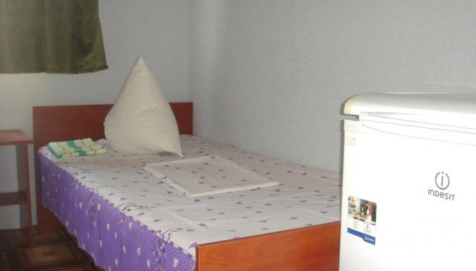 Стандарт: 1 комната, балкон, душевая кабина, туалет, холодильник, телевизор, шкаф, тумбочка, стол, табуретки, кровати – 2-х спальная или 2 односпальные.