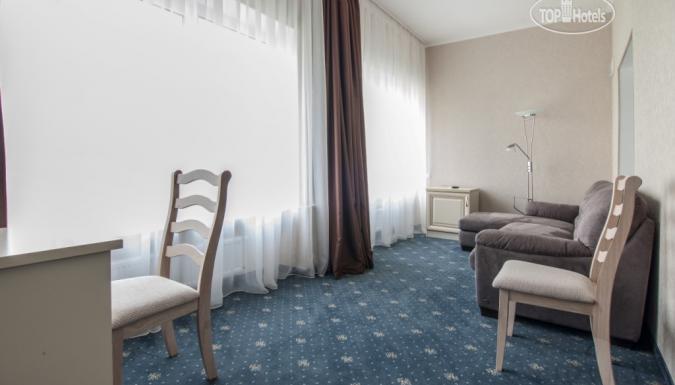 - Полулюкс - двухкомнатный номер с балконом, общей площадью 35 кв.м., с одной большой кроватью и уютной гостиной,
