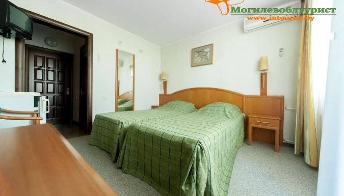 В номере: 2 отдельные кровати, балкон, телевизор, холодильник, кондиционер, телефон, туалет, душ.