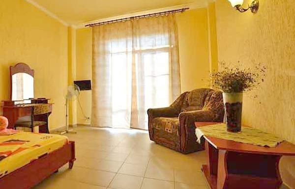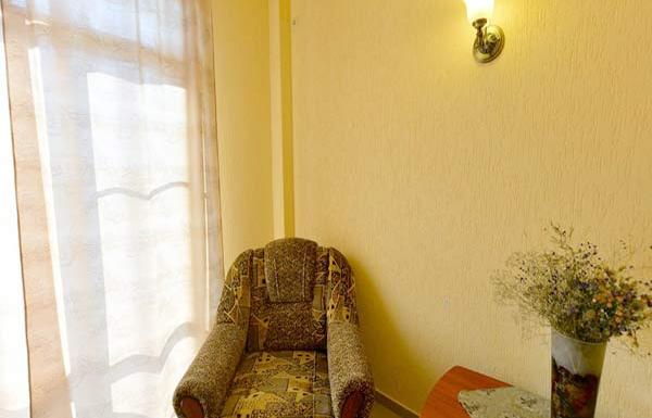 душевая кабина, унитаз, раковина), холодильник, кондиционер. Горячая, холодная вода в номерах круглосуточно. Во всех номерах есть балконы со стульями и столиком.