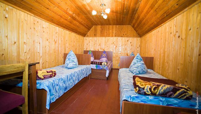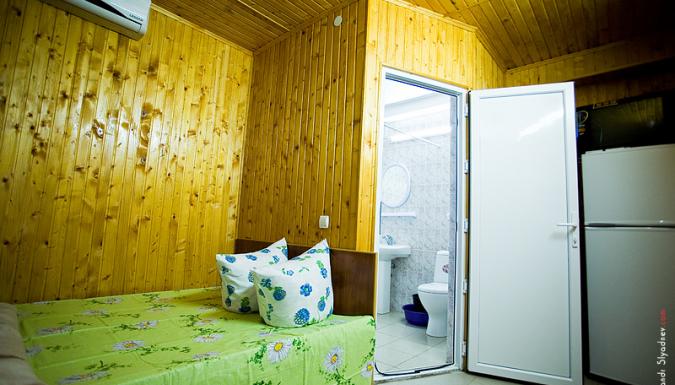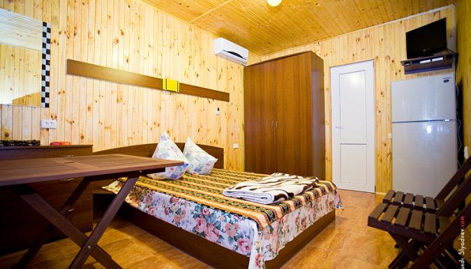 Номер «Эконом»: 2 / 3 / 4-местные номера в 3-этажных деревянных домиках или деревянном корпусе, холодильник, телевизор в некоторых номерах, шкаф, стол, стулья, вешалка, кровати, терраса с летней мебелью, отдельный вход, есть номера с видом на море, душ с горячей водой и туалет находятся в отдельном корпусе.