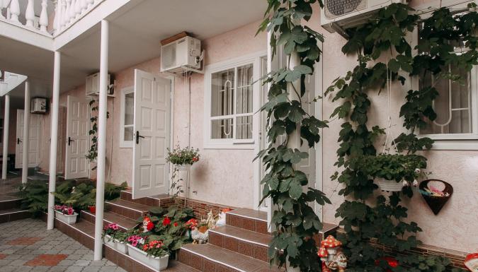 Номера гостиницы Розовый дом в Затоке оборудованы всем необходимым для уютного отдыха - удобные двуспальные и односпальные кровати, дополнительные места, современная практичная мебель, холодильник, тв, кондиционер, балконы, террасы и зоны отдыха.