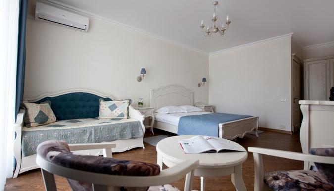 Каждый номер оснащен:- кондиционером;-кабельным ТВ;- плазменным телевизором;- холодильником;- сан узлом; - балконом. В номере осуществляется ежедневная влажная уборка.
