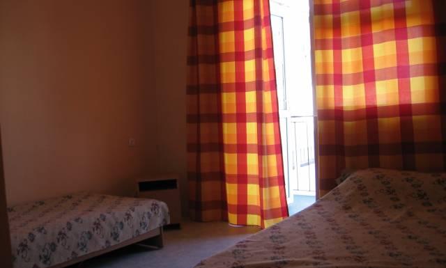 Пансионат располагает 2-х, 3-х, 4-х местными комфортабельными номерами. Во всех номерах туалет, умывальник, душ, холодильник, телевизор. 3-х местные номера оснащены кондиционерами. Из каждого номера отдельный выход на общий балкон-террасу. Некоторые 2-х местные номера имеют отдельную веранду (вход в номер с улицы). Есть Wi-Fi, покрытие практически во всех номерах.