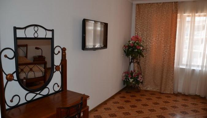 В номере: двуспальная или две раздельные кровати для 2х местного номера. Три раздельные или двуспальная + односпальная кровати для 3х местного. Телевизор, холодильник, кондиционер, балкон с набором мебели.
