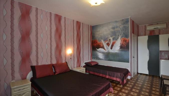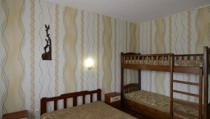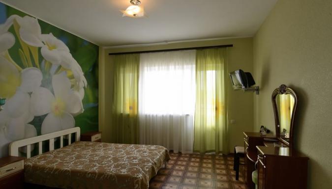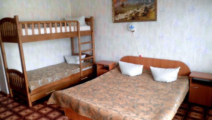 - с удобствами 2-х, 3-х, 4-х местные укомплектованы новой мебелью: деревянные кровати, прикроватные тумбочки, трюмо с пуфиком для женщин, вместительный шкаф, мягкие стулья; сервант с набором посуды; балкон со стульями и столом; в каждом номере установлен кондиционер, холодильник, телевизор, электрочайник, а также своя душевая комната, санузел с круглосуточной горячей и холодной водой.