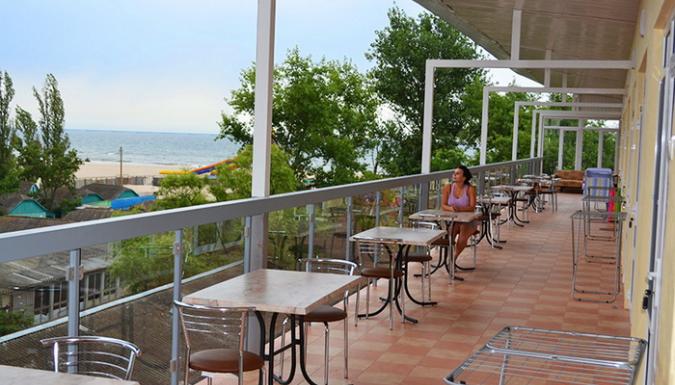 Собственная столовая с домашними блюдами и кафе-бар на пляже, детская игровая площадка, интернет WI-FI. База охраняется круглосуточно. Каждому гостю выдается браслет - чип, благодаря чему охрана контролирует вход посторонних лиц на базу отдыха и на пляж.
