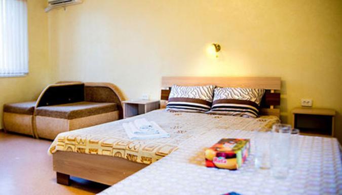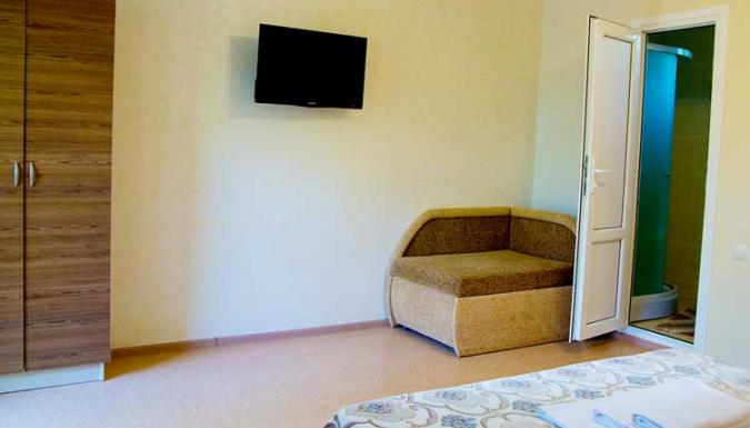 Номер: 2-х местный стандарт с телевизором, холодильником, вентилятором в номере и удобствами (туалет, умывальник, душ) на блок ( на три 2-х местных номера). Номера совершенно новые, сданы в эксплуатацию в мае 2017 года.