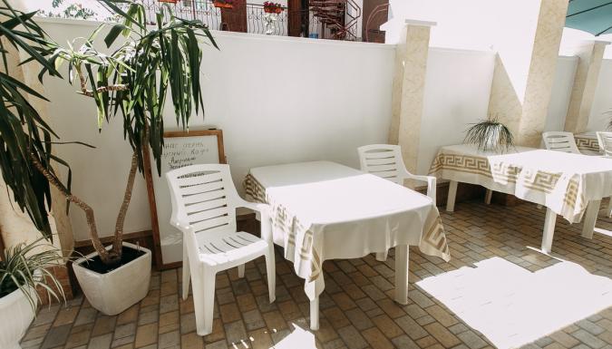 4. Возможность приобретения трех-разового комплексного питания в собственном кафе, расположенное в теневой части территории мини-отеля.