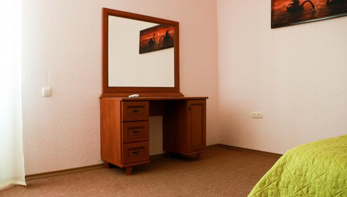 Номер полулюкс: туалет , душ, холодильник, кондиционер, спутниковое ТВ, необходимая мебель