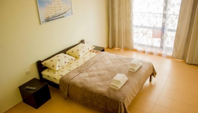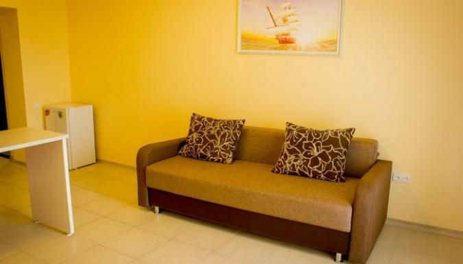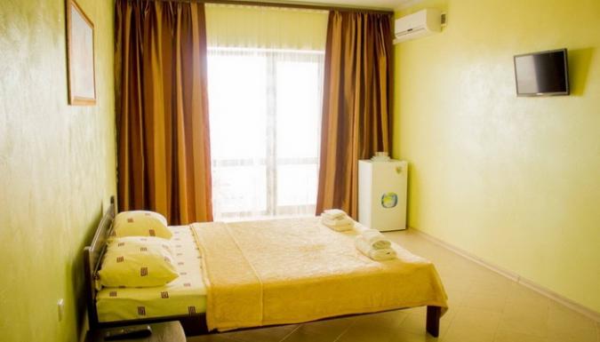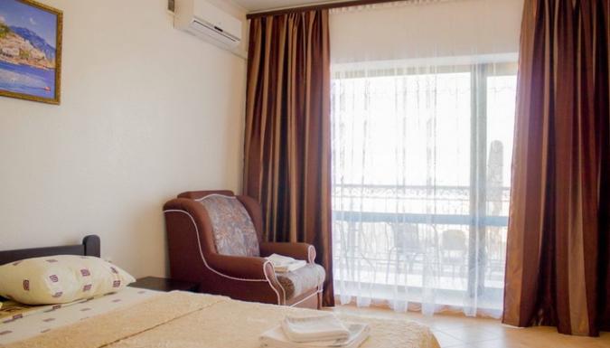 В номере- телевизор, холодильник, кондиционер, санузел с минимальным набором косметических принадлежностей, фен. Все номера имеют балкон (прямой вид на море!), оборудованный столом и стульями.