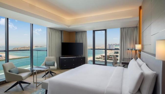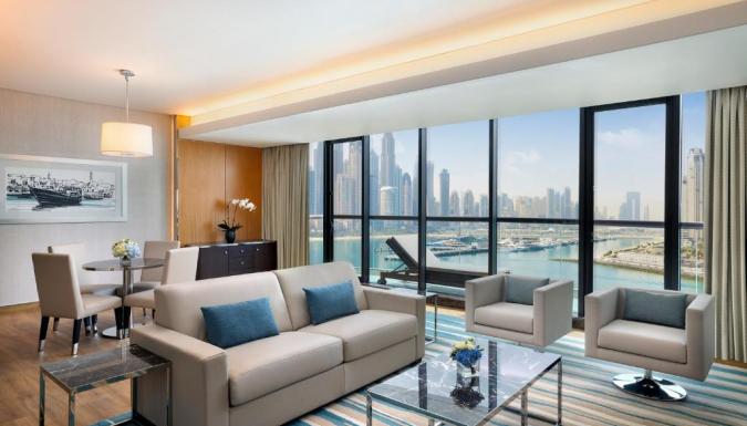 Во всех номерах есть балкон или терраса с захватывающим видом на Персидский залив и сверкающий городской пейзаж района Дубай-Марина. Из французских окон каждый вечер открывается великолепный вид на закат.