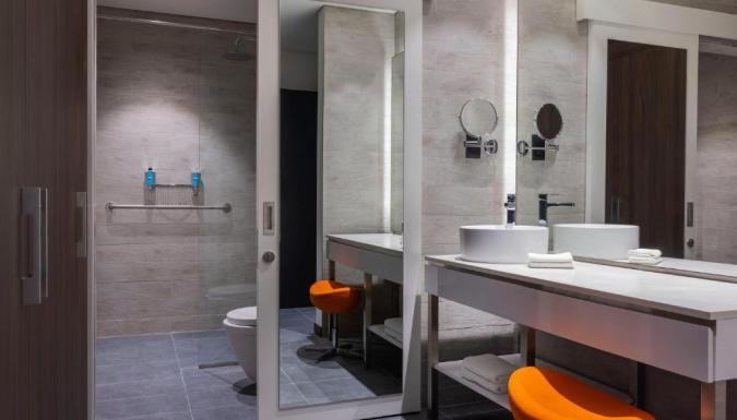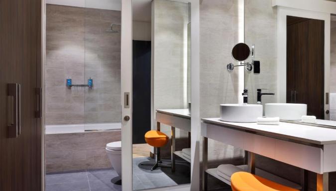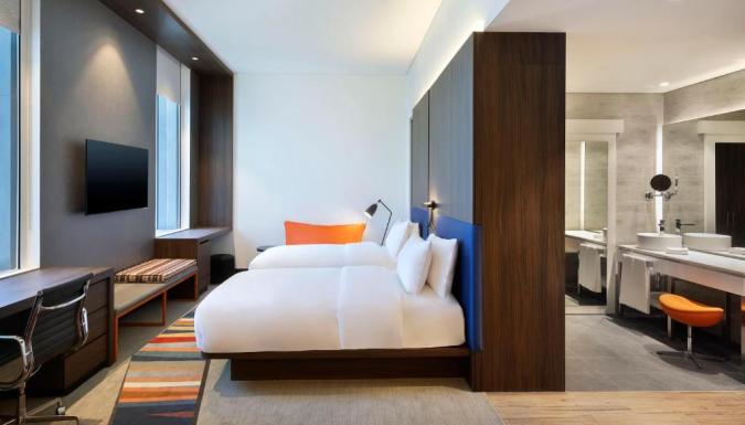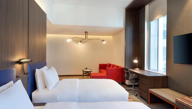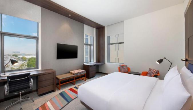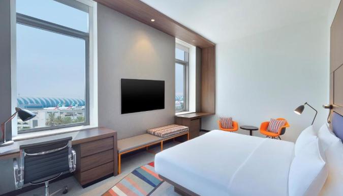 В числе удобств номеров — кондиционер, письменный стол, чайник, мини-бар, сейф, телевизор и собственная ванная комната с душем. В каждом номере отеля Aloft Dubai Airport предоставляются полотенца и постельное белье.