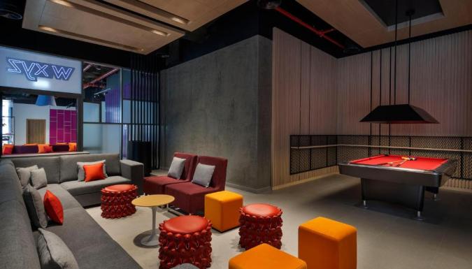 На территории отеля Aloft Dubai Airport обустроена терраса для загара.