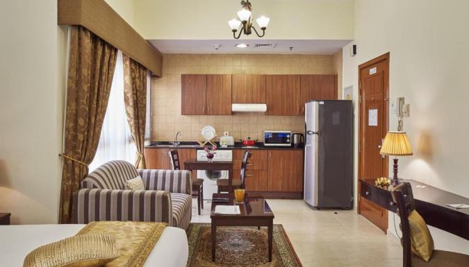 Все номера-студио и апартаменты в апарт-отеле Arabian Dreams обставлены современной мебелью, а пол в них выполнен из мрамора. В числе удобств полностью оборудованная кухня и гостиная зона со спутниковым телевидением.