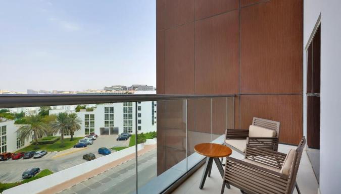 Гости апарт-отеля Element Dubai Airport могут отдохнуть на террасе для загара.
