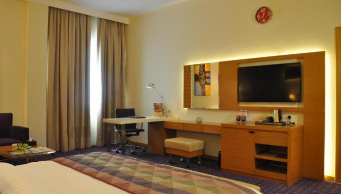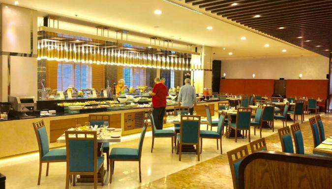 Богатый завтрак, в том числе приготовленный на заказ яйца, сервируется в первой половине дня. В ресторане 24/7 по вечерам готовят блюда паназиатской кухни. При отеле имеется спортивный бар, а также изысканный Индийский ресторан.