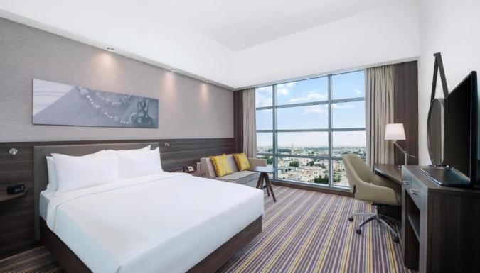 Новый, современный отель Hampton by Hilton Dubai Airport расположен рядом с международным аэропортом Дубая. По утрам для гостей сервируют бесплатный горячий завтрак. В теплом, уютном лобби обустроены многофункциональные зоны для общего пользования и работы. В числе удобств отеля — полностью оборудованный фитнес-центр и открытый бассейн с регулируемой температурой воды.