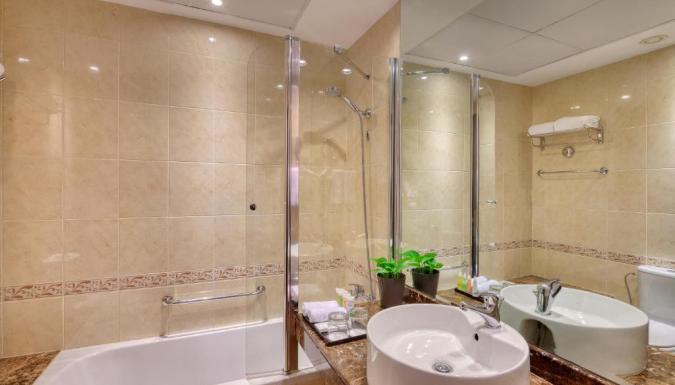 Номер с кондиционером, письменным столом и телевизором с плоским экраном. В ванной комнате установлена ванна и предоставляются бесплатные туалетно-косметические принадлежности.
