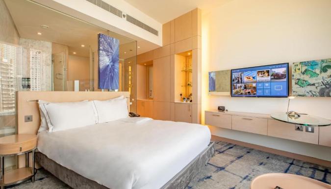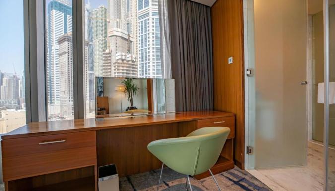 Номера отеля Media One оснащены ЖК-телевизором со спутниковыми каналами. В числе удобств доступ в интернет, мини-бар и принадлежности для чая/кофе. Из некоторых номеров открывается живописный вид на Дубай и остров Пальма-Джумейра.