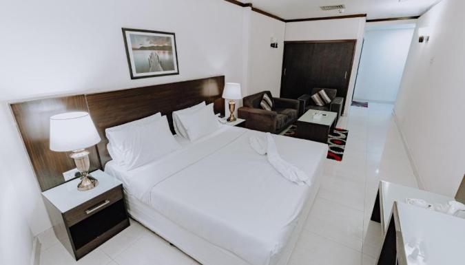 Номера отеля Panorama Deira меблированы в строгом стиле, а из окон открывается вид на город. В числе удобств небольшая гостиная зона, мини-бар и собственная ванная комната. Круглосуточно и без выходных осуществляется доставка еды и напитков в номер.