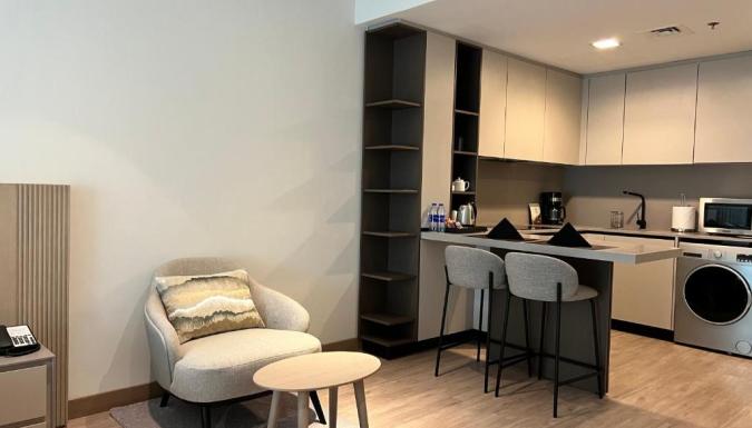 Современные номера отеля Grand Stay со вкусом оформлены в средиземноморском стиле. В распоряжении гостей кондиционер, телевизор с плоским экраном, гостиная и письменный стол. Мини-кухня оснащена микроволновой печью и холодильником.