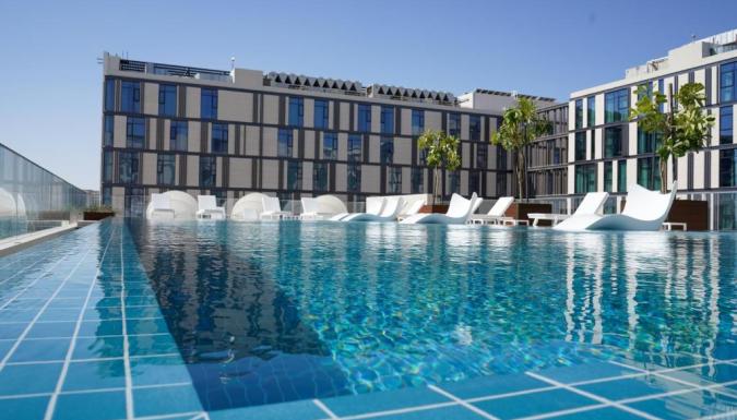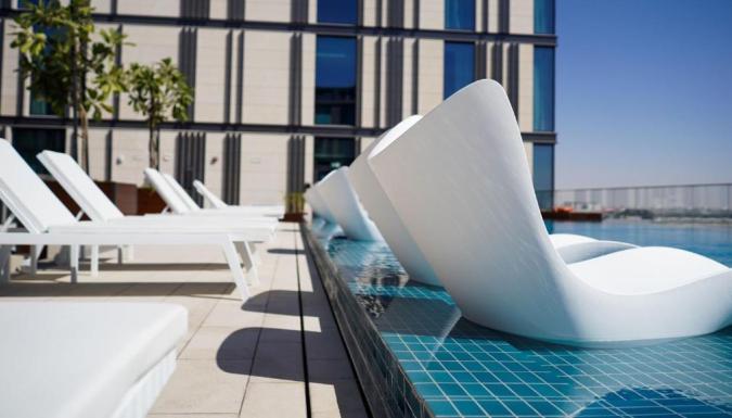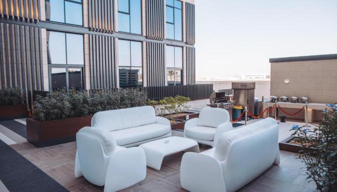 Гости апарт-отеля Staybridge Suites Dubai Al-Maktoum могут отдохнуть на террасе для загара.