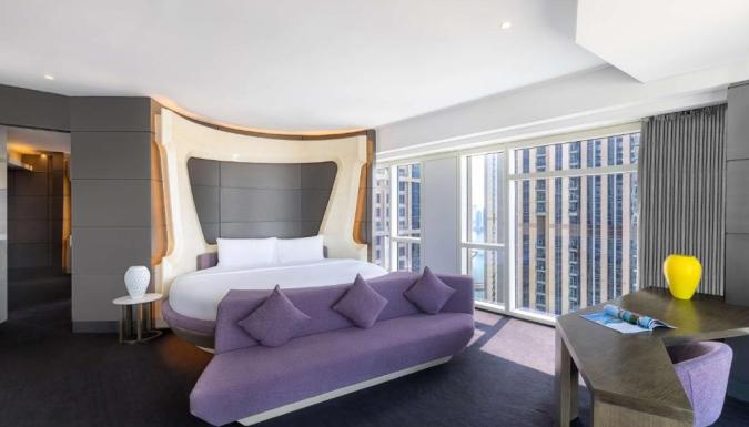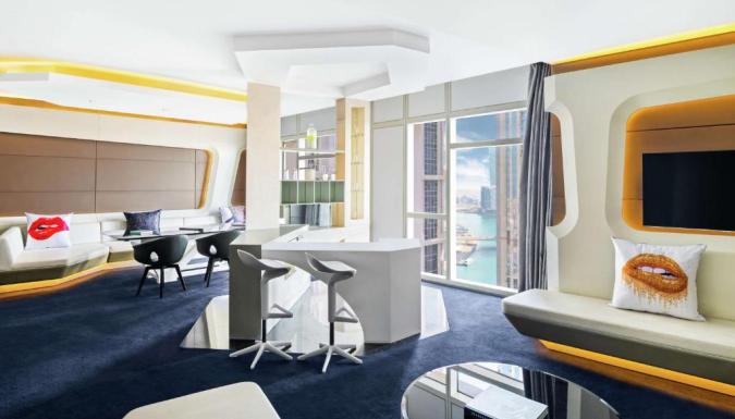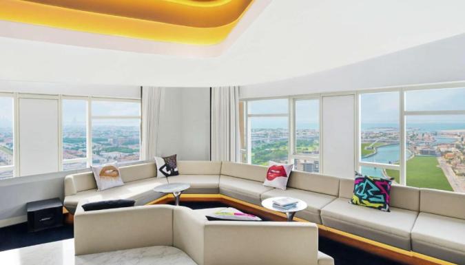 К услугам гостей 356 номеров, в том числе 76 люксов. Регистрация заезда производится в новом V Hub на 8 этаже с захватывающим видом на Дубайский водный канал. Гостям предлагается размещение в недавно открывшихся номерах Делюкс с кроватями размера «king-size», двухместных номерах с 2 отдельными кроватями и люксах для вечеринок с необычными кроватями размера «king-size» и видом на Дубайский водный канал или шоссе шейха Зайда. Фирменные люксы отеля Sky Villa и Penthouse с коктейльной станцией и баром прямо в номере станут превосходным местом для отдыха. В фирменном люксе Penthouse отеля V Dubai, Curio Collection by Hilton, расположенном на верхнем этаже, с захватывающим видом на Дубайский водный канал и пультом диджея, можно потанцевать и расслабиться в собственной гидромассажной ванне. Идеальным местом для проведения праздничных мероприятий и танцев в отеле V Dubai, Curio Collection by Hilton считается двухуровневый люкс Sky Villa.