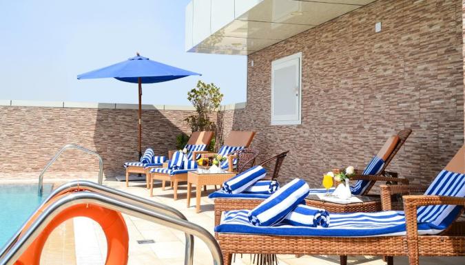 У отеля нет своего пляжа. Предоставляется трансфер на общественный пляж Аль Хан, ежедневно, 1 раз в день.
