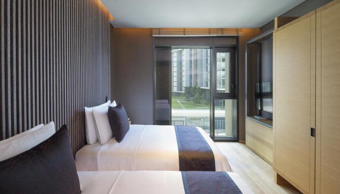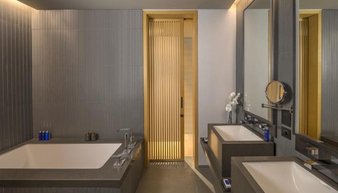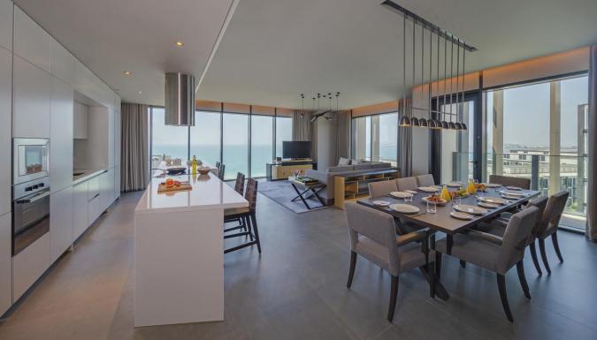Отель расположен на насыпном полуострове в районе Джумейра и является частью резиденции The Residences at Caesars Palace Bluewaters Dubai.