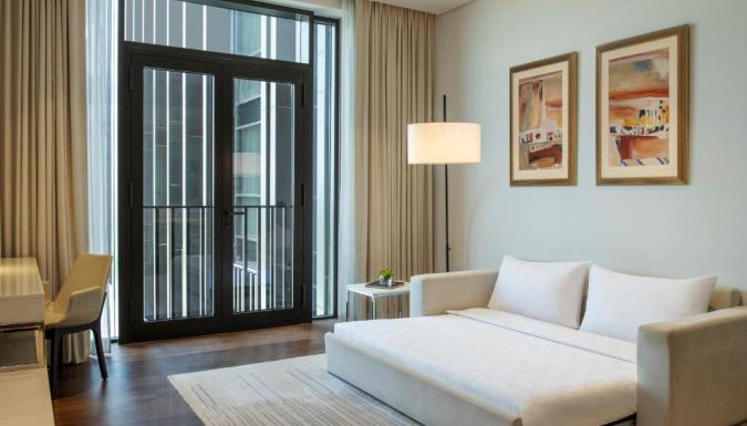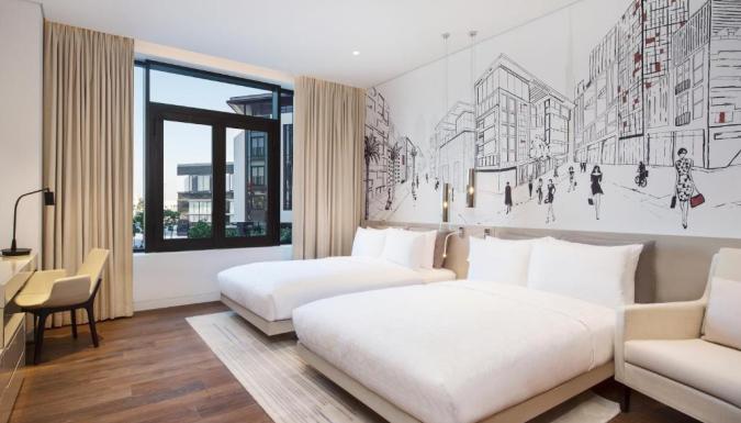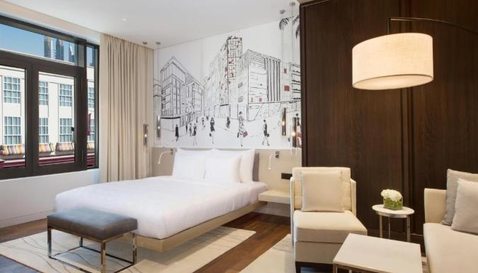 Гости размещаются в просторных номерах и апартаментах, оформленных в непринужденном урбанистическом стиле с элементами роскоши. Номера обставлены изысканной мебелью нейтральных тонов и украшены современными художественными работами. В распоряжении гостей ванная комната с роскошными мраморными столешницами, отдельно стоящей ванной и душем, которая отлично подходит для того, чтобы расслабиться и привести себя в порядок.