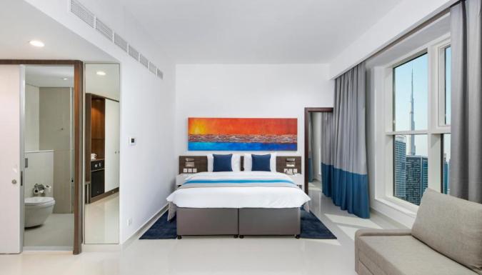 Отель в деловом районе Дубая. Современные номера, часть из которых имеет вид на Бурж-Халифа. К услугам гостей: открытый бассейн на крыше, тренажёрный зал, конференц-зал. Подойдёт для размещения вдвоём или компанией.