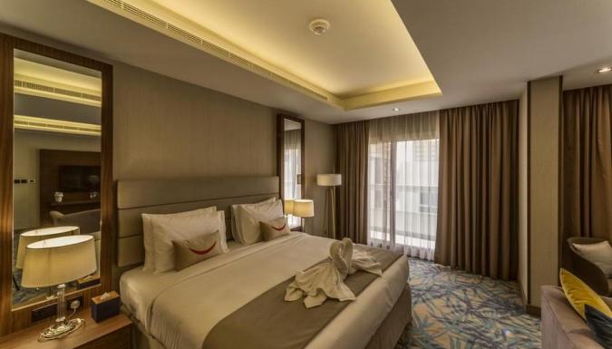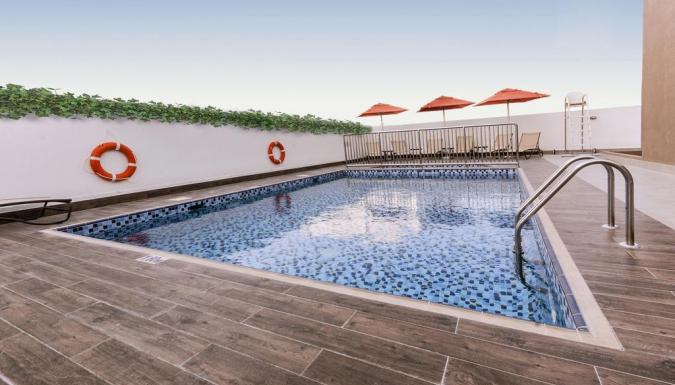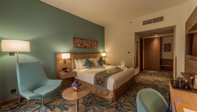 Расположен в Дубае, рядом находятся несколько торговых центров, отлично подходит для шоппинга. На территории отеля есть бассейн, спа и фитнес центры, а также конференц-зал.