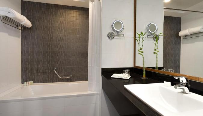 - Wi-Fi (бесплатно) - 42-дюймовый телевизор - DVD-плеер - электронный сейф - док-станция для IPod - утюг и гладильная доска - мини-бар - набор для приготовления чая и кофе - ванная комната с душем и ванной - фен для волос - набор для обуви - минеральная вода (ежедневно, бесплатно) - прямой международный телефон - услуга "звонок-будильник" - сервис в номер (24 ч, платно)
