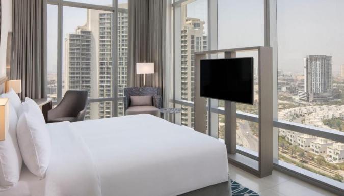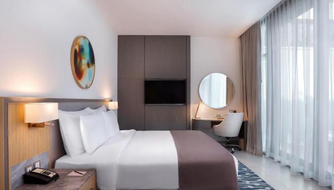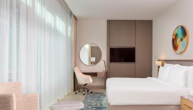 Стильный современный отель в центре оживленного района Jumeirah Village Circle. На территории для гостей работают: открытый бассейн, тренажерный зал и SPA-салон. Доступен бесплатный Wi-Fi. Предоставляется бесплатный трансфер до торговых центров Дубая. Подойдет для отдыха вдвоем, для любителей шопинга.