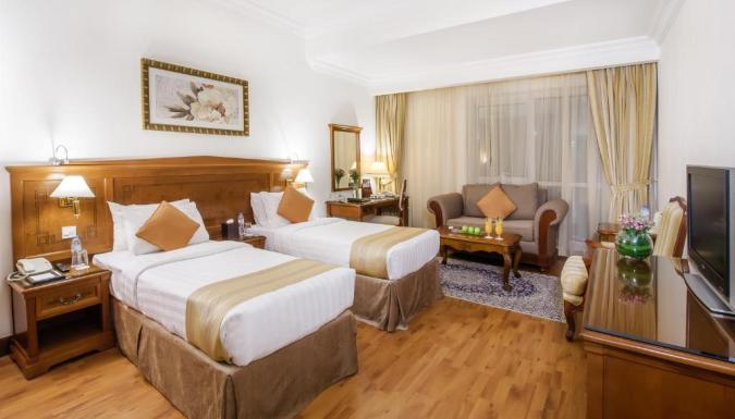 В оформлении современных номеров использованы декоративные элементы в арабском стиле. Все номера и люксы оснащены современными удобствами, в числе которых телевизор с плоским экраном и интерактивная развлекательная система.