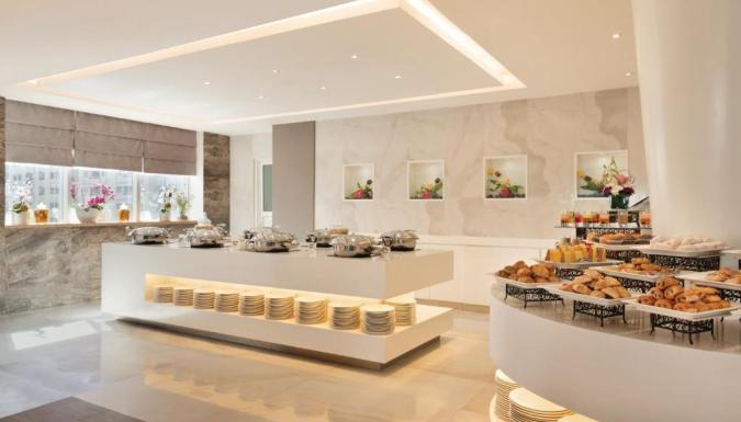 В течение всего дня в лаундже Lemon сервируют различные блюда местной и интернациональной кухни. Заказать напитки на открытом воздухе можно в баре View@20, из окон которого открывается панорамный вид на город, острова Саадият и Яс и набережную Корниш. Доставка еды и напитков в номер осуществляется круглосуточно.