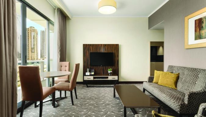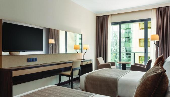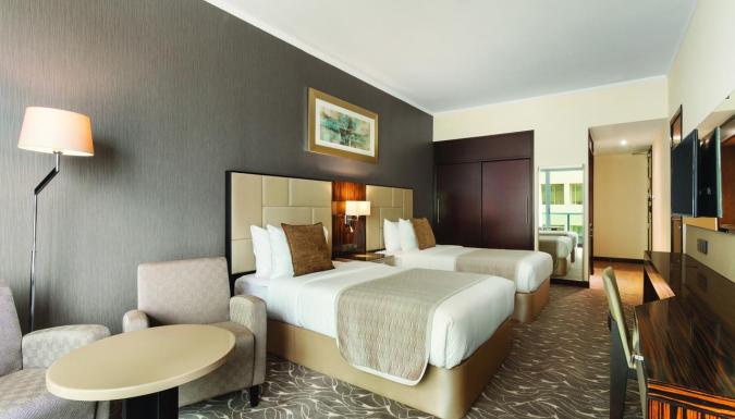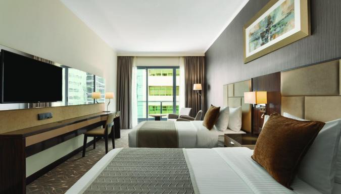 Отель Hawthorn Suites by Wyndham Abu Dhabi City Center с открытым бассейном, пляжем и общим лаунджем расположен в городе Абу-Даби.