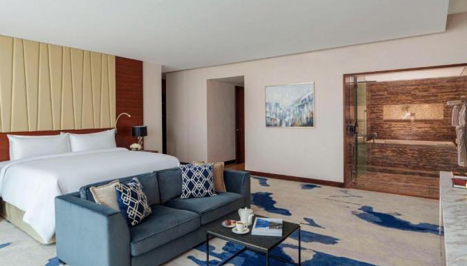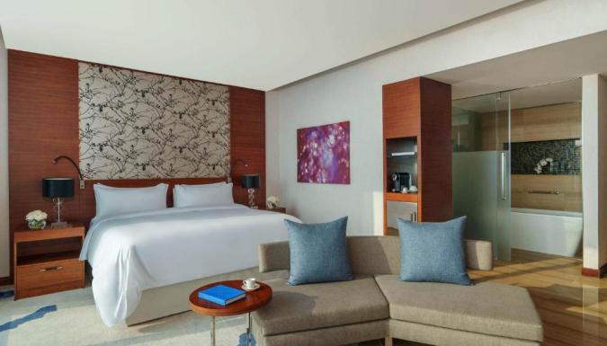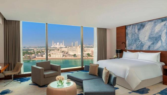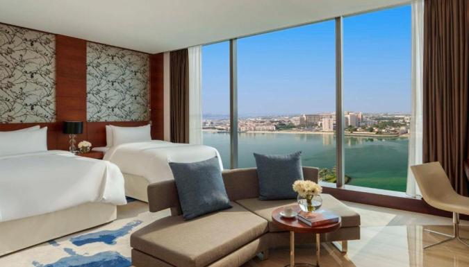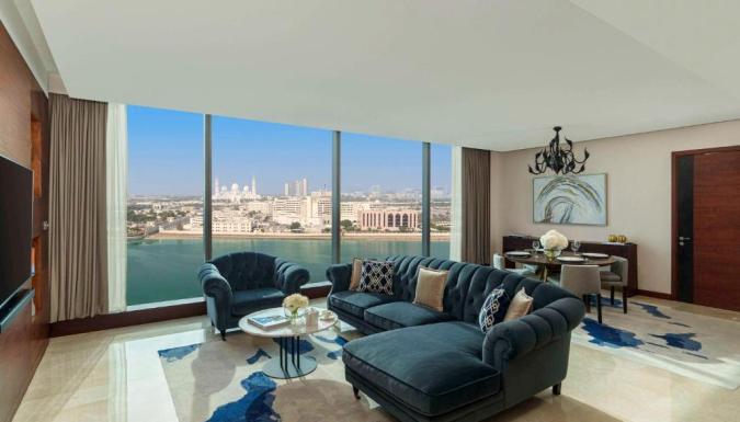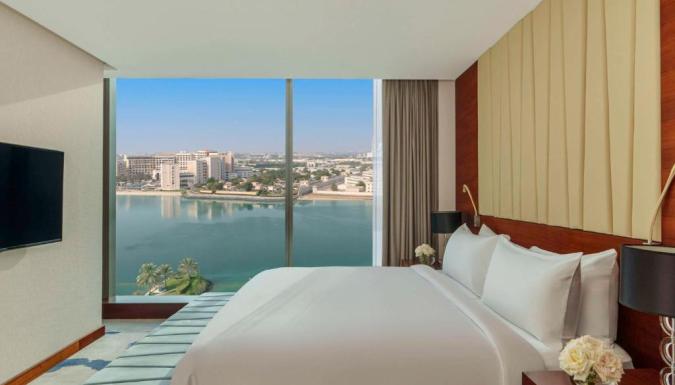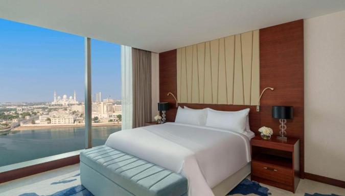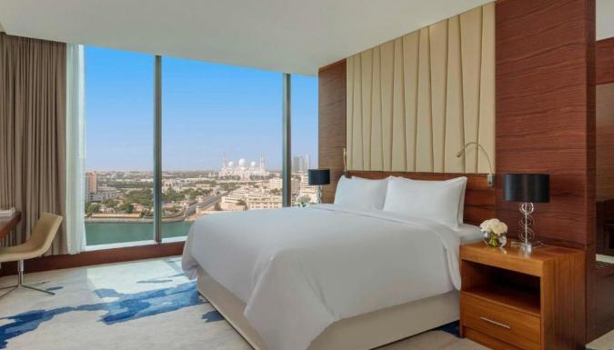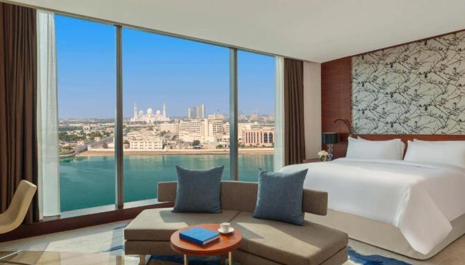 Все просторные номера с ванными комнатами красиво оформлены в современном стиле. Из окон многих номеров открывается вид на залив Абу-Даби и мечеть шейха Зайда.