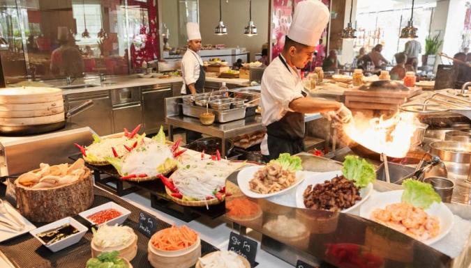 В ресторанах отеля Fairmont Bab Al Bahr представлен большой выбор блюд международной кухни. В ресторане Marco Pierre White Steakhouse & Grill можно сытно поесть, а на террасе рядом с пляжем — покурить кальян.