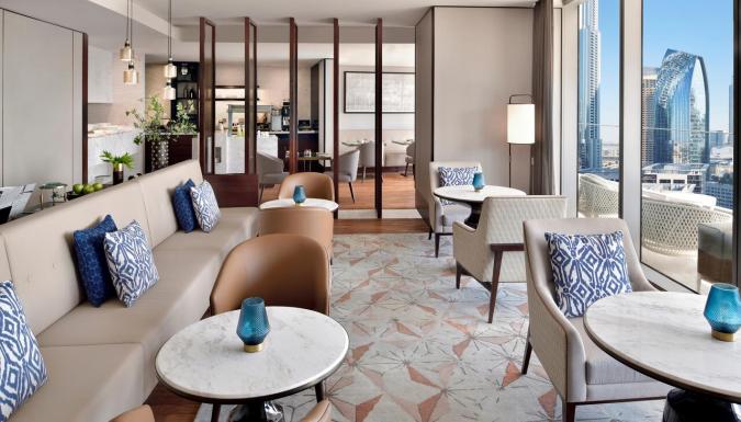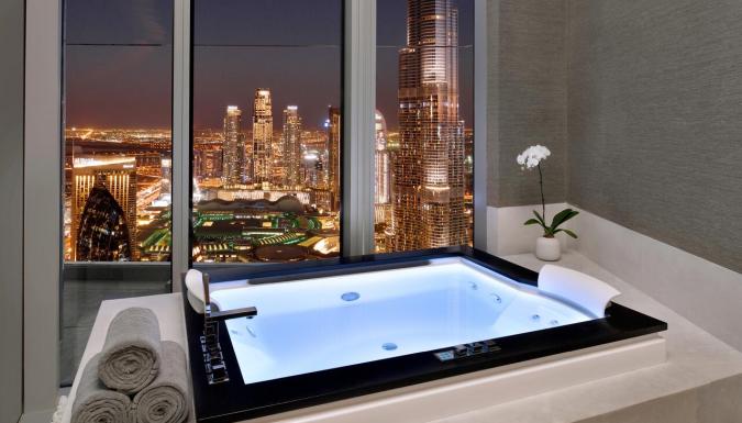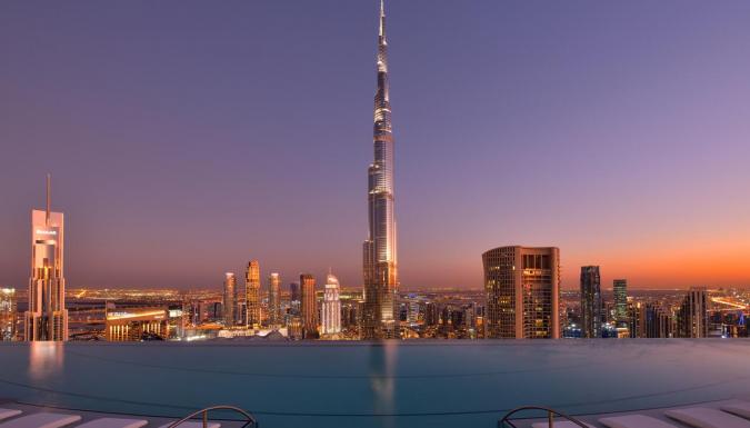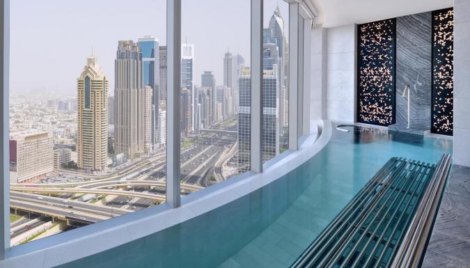 Элегантный архитектурный комплекс из двух башен соединён уникальным мостом Sky Bridge. На нём находится панорамный инфинити-бассейн, а также смотровая площадка, с которой открываются захватывающие дух виды на окрестности Дубая.