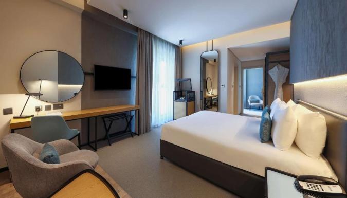 Номера оснащены кондиционером, чайником и телевизором с плоским экраном. В числе удобств рабочая зона, гостиная зона и собственная ванная комната с феном и душем. В номере установлен шкаф для одежды и рабочий стол.
