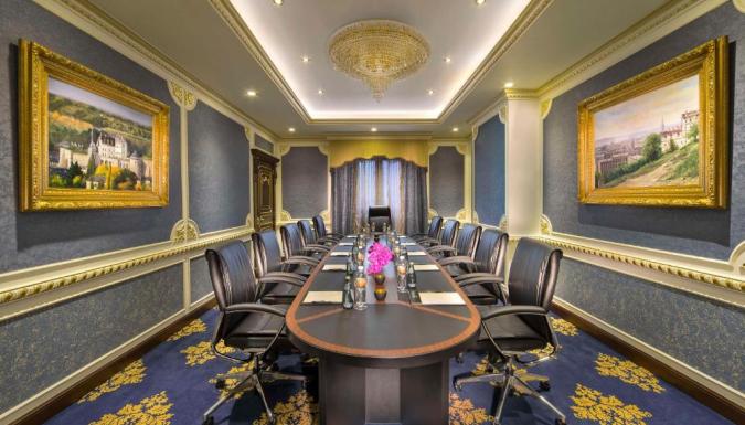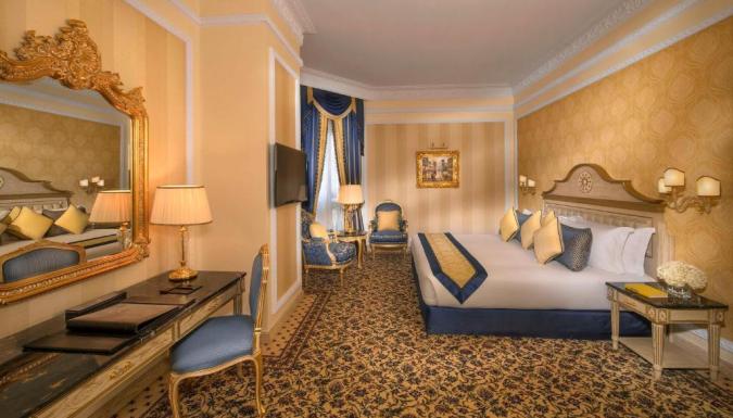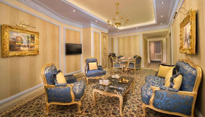 Элегантные номера декорированы в стиле барокко и располагают кондиционером, небольшой гостиной зоной со спутниковым телевидением, мини-баром и электрическим чайником. В люксе есть гостиная и балкон с видом на город.