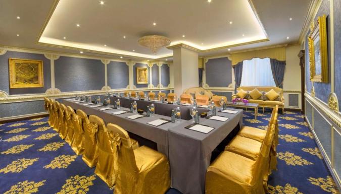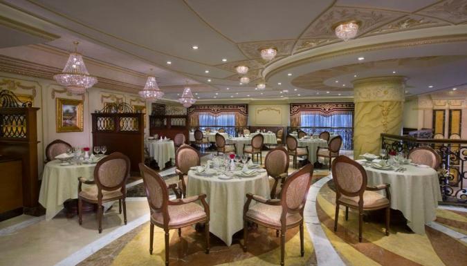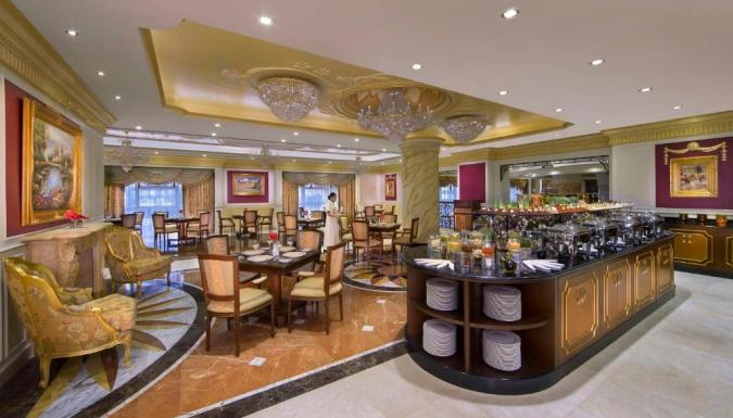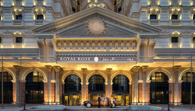 В эклектичной обстановке ресторанов отеля Royal Rose подают разнообразные блюда - от арабской до международной кухни. В кафе Brasserie можно заказать различные сорта чая, освежающие безалкогольные коктейли, закуски и торты.