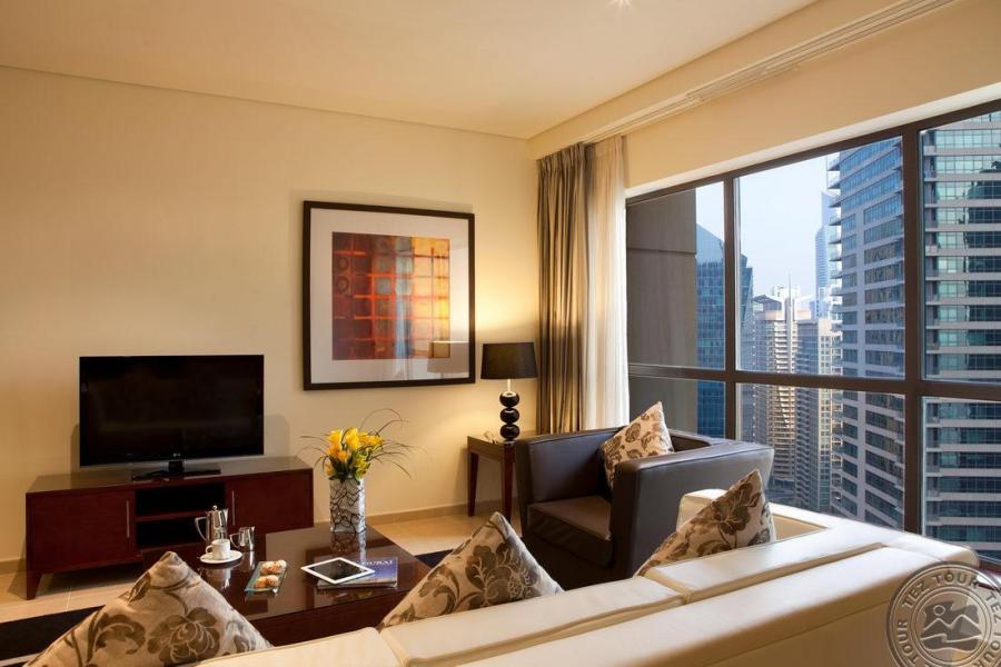 - В роскошных номерах отеля Ramada Plaza Jumeirah Beach установлены большие французские окна