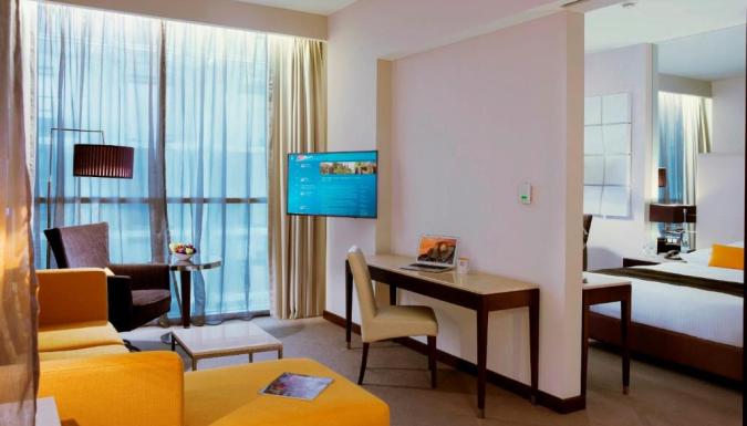 Уютный и современный отель, принадлежащий сети Rotana, находится в деловом центре Дубая. На территории есть открытый бассейн, работает тренажёрный зал. Помимо этого гости могут посетить ресторан или бар с большим выбором напитков.